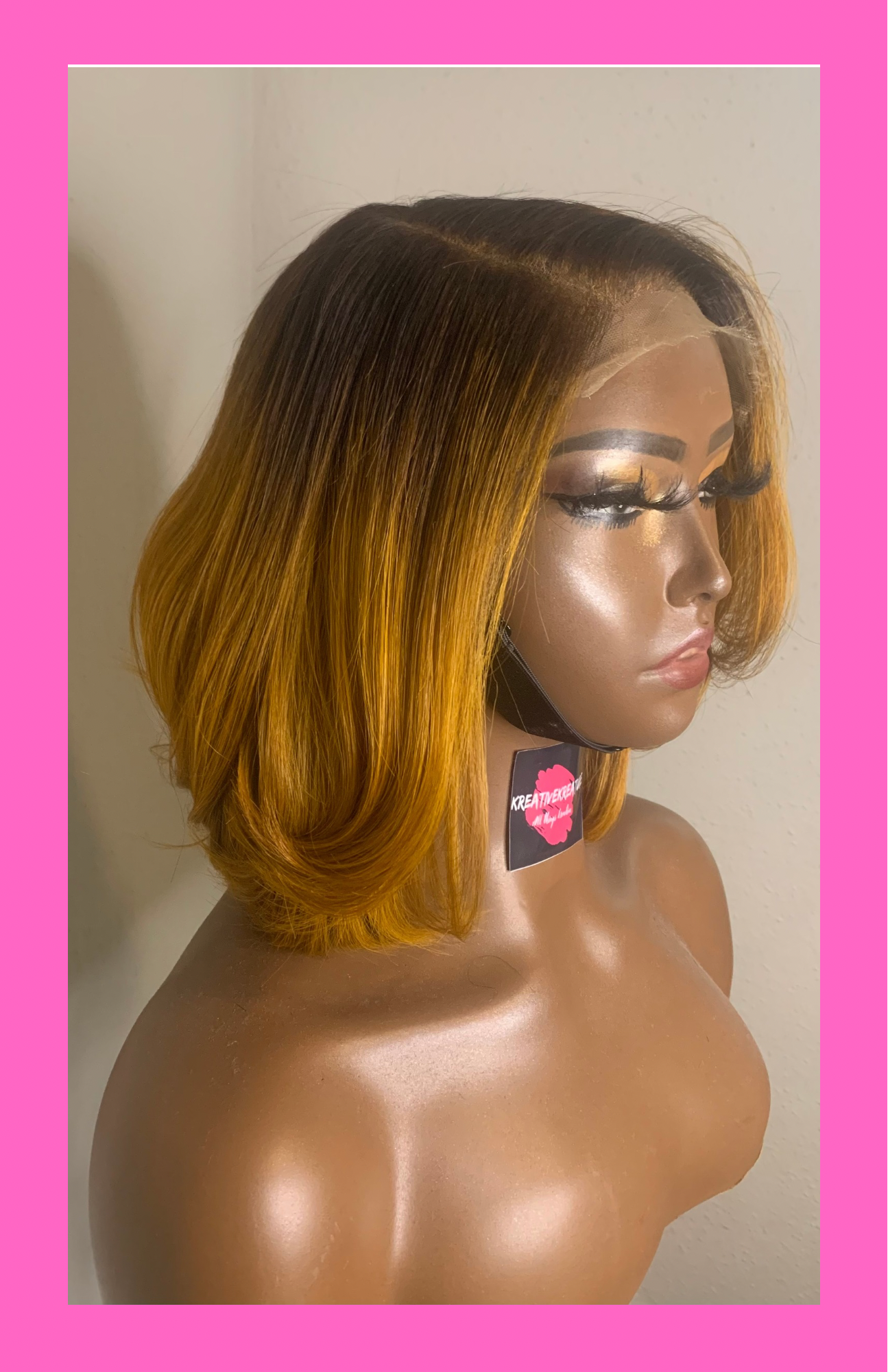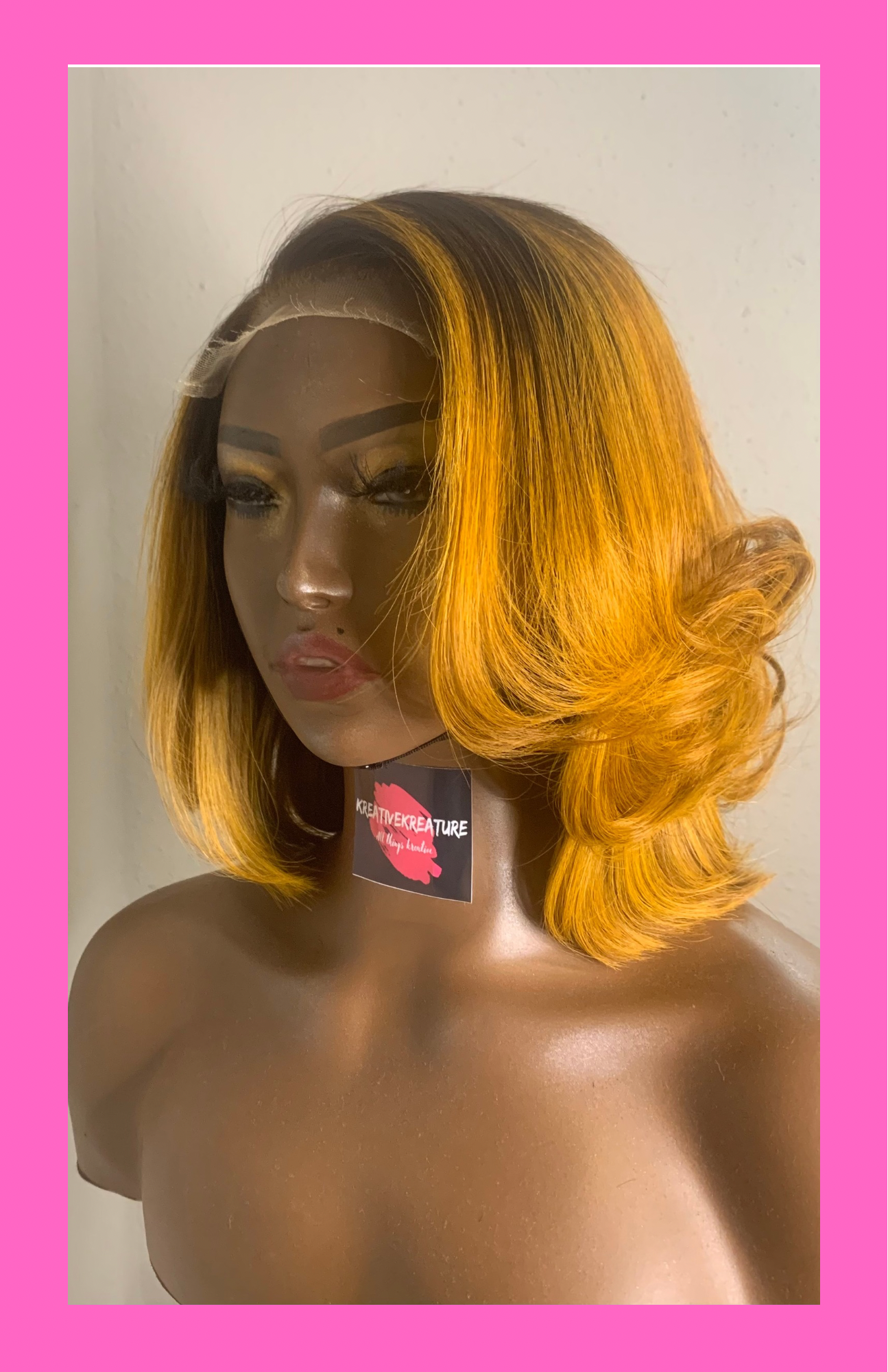12 inches of ombre’ ginger orange, Pre- plucked 5x5 lace closure on a stretch dome cap, secured with a comb and adjustable band. Size 22-22.5 (M). Minimal styling, glueless, ready to wear. Comes straightened, can be curled.